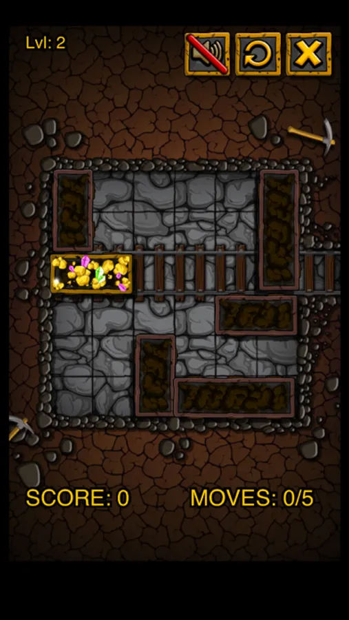 Help the Miner escape by getting his cart full of gold out of the mine by sliding the carts filled with rocks out of the way. Watch out! You have a limited number of moves per level.