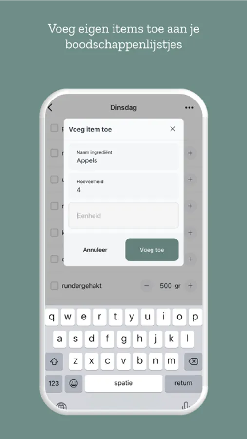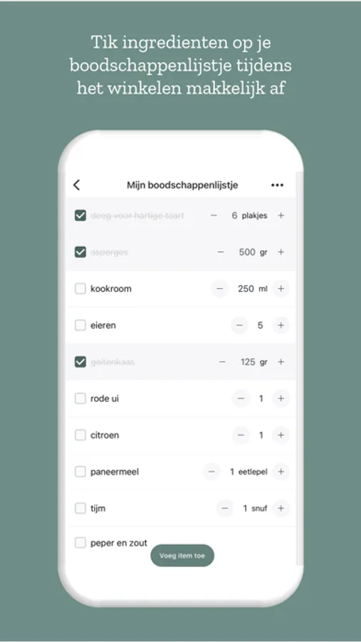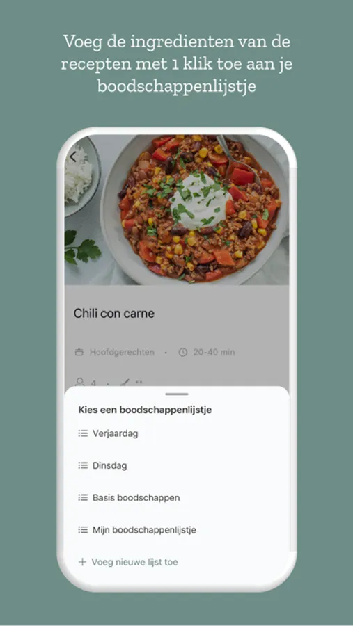- Ingrediënten toevoegen aan je boodschappenlijstje