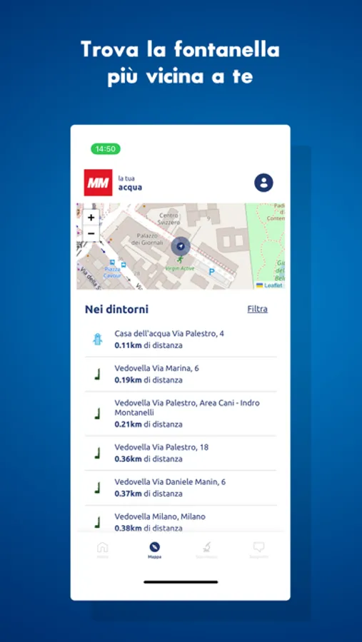 Se vuoi saperne di più sull’acqua di Milano accedi al sito “La tua Acqua” (www.latuaacqua.it), direttamente dalla APP.