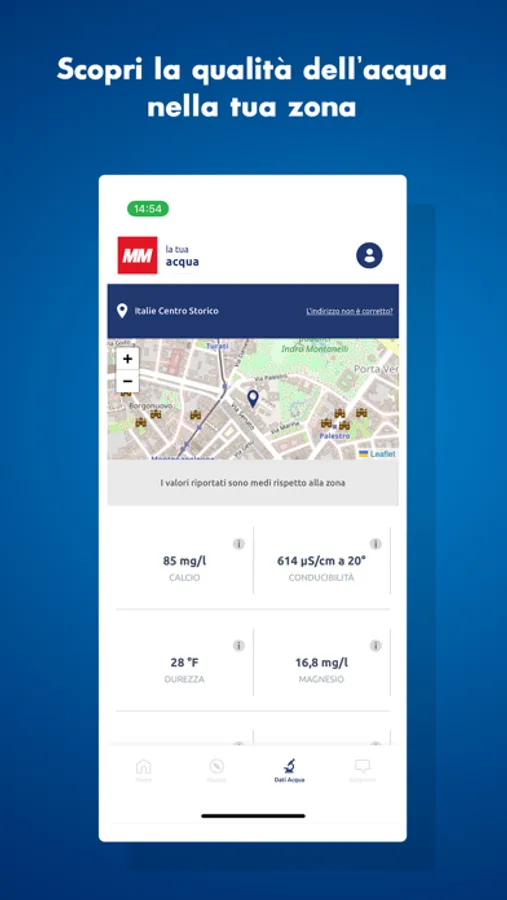 • DATI ACQUA: per avere le informazioni sulla qualità dell’acqua della tua zona