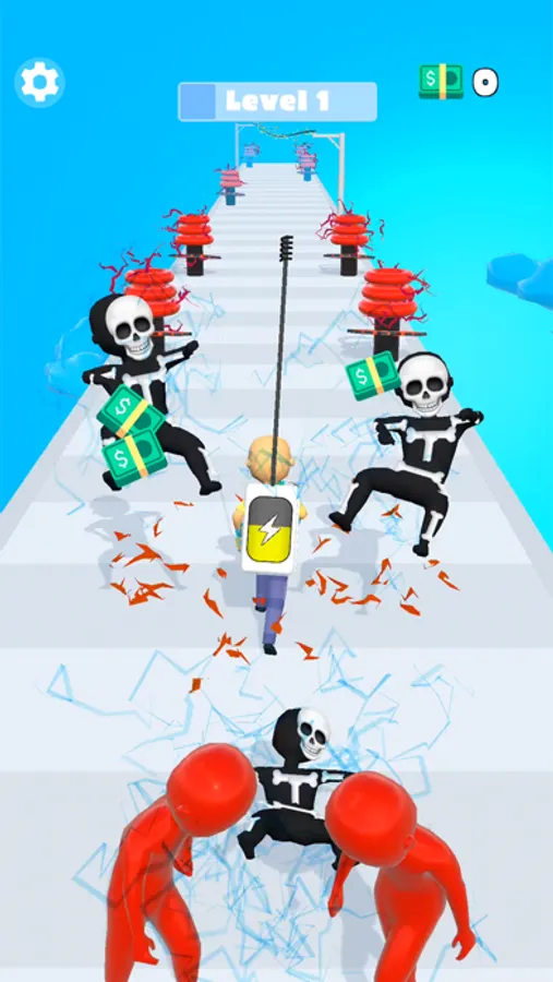 Run-on the ramp and get the battery up! Collect your energy and charge up until you win it. But be careful, there will be challenges on your way to winning. Fight with the devils, enemies, and skeletons that are stopping you but get your power back after to keep going!