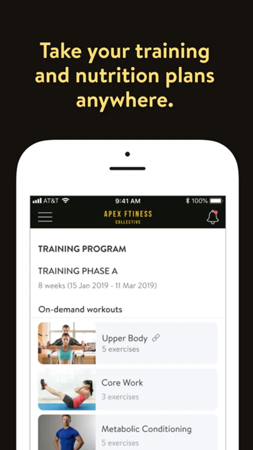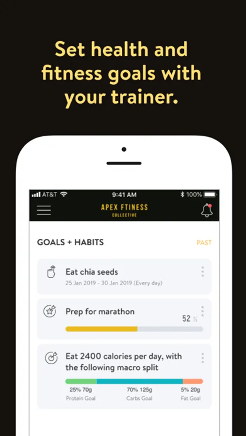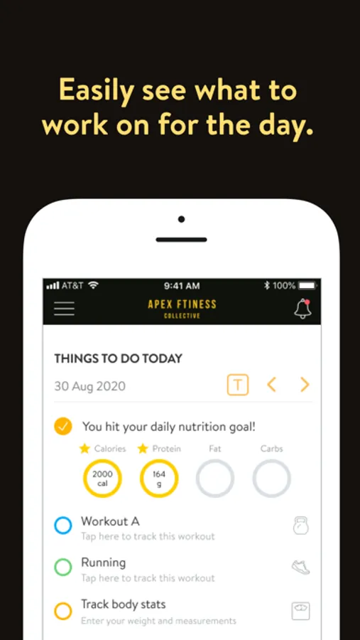 With the Apex Fitness Collective App, you can start tracking your workouts and meals, measuring results, and achieving your fitness goals, all with the help of your personal trainer.