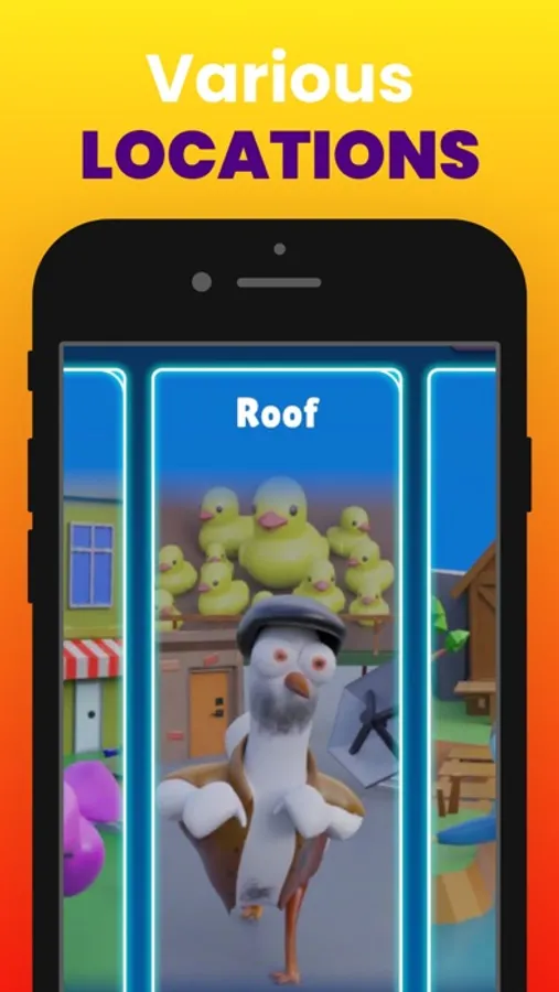 The player will go through the habitats of bird groups on various levels: park, roof, food court, gas station and many others.
