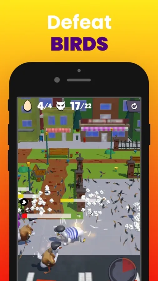 Guide the hero with a joystick, moving your finger on the screen. The player needs to click on the screen to attack enemies. If you want to damage several birds at once, use the super-attack button.