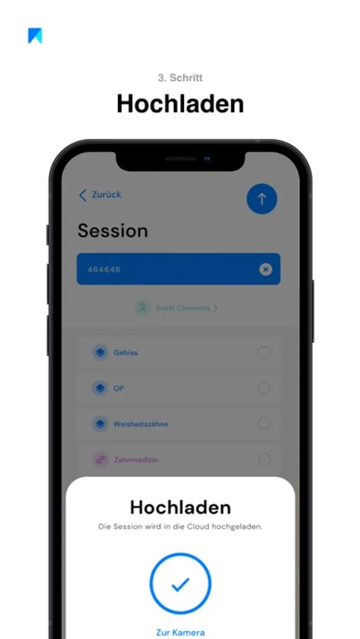 Mit der mobilen App von DentaSnap können Sie und alle Mitarbeiter Ihrer Praxis mit Ihrem Smartphone Fotos von Patienten direkt in die Cloud der Praxis hochladen. In wenigen Schritten werden Fotos gemacht, den Patienten und Themen zugeordnet und anschließend hochgeladen.