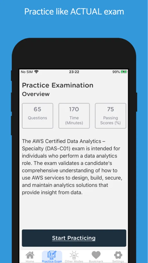 4.Examination mode will help you take test like a real exam. So you will be more confident.
