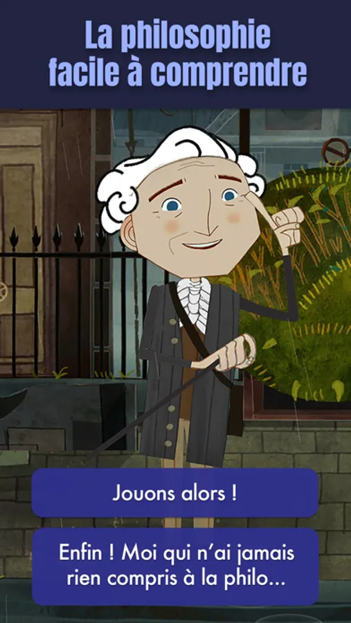 Philo est un jeu narratif à choix multiples dans lequel le joueur discute avec les plus grands philosophes.