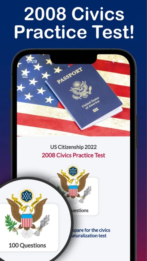 The 2008 Civics practice test is a study app to help you test your knowledge of U.S. history and government. Use this app in English to prepare for the civics portion of the naturalization test.