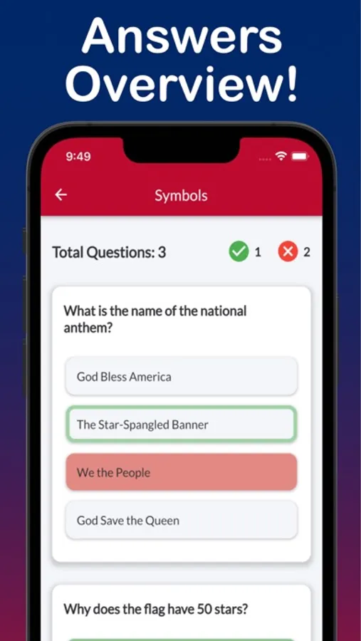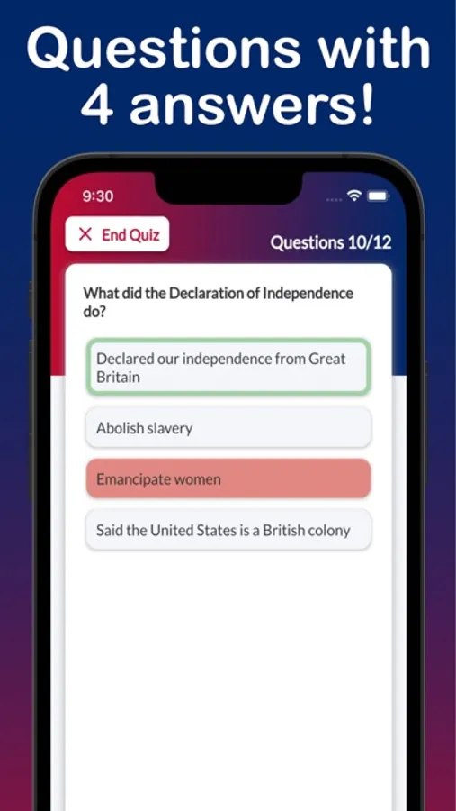 The actual civics test is NOT a multiple choice test. During your citizenship interview, you will be asked up to 10 questions from the list of 100 questions. You must answer 6 out of 10 questions correctly to pass the civics portion of the citizenship test. Nobody knows which questions you will be asked so it is essential to learn all 100 questions and answers.