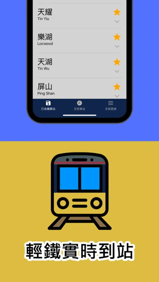 - 收藏你成日去嘅車站,一入app即刻show到下一架輕鐵幾時到