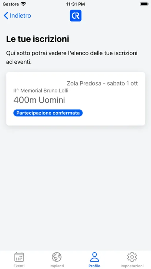 CallRoom è l'app ufficiale dell'Emilia-Romagna in cui puoi cercare le prossime manifestazioni per gara, filtrare gli eventi, visualizzare la mappa degli impianti, consultare gli orari di apertura, confermare le tue iscrizioni alle gare e tanto altro!