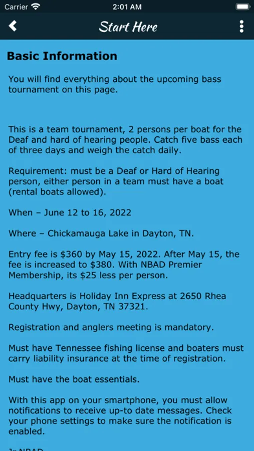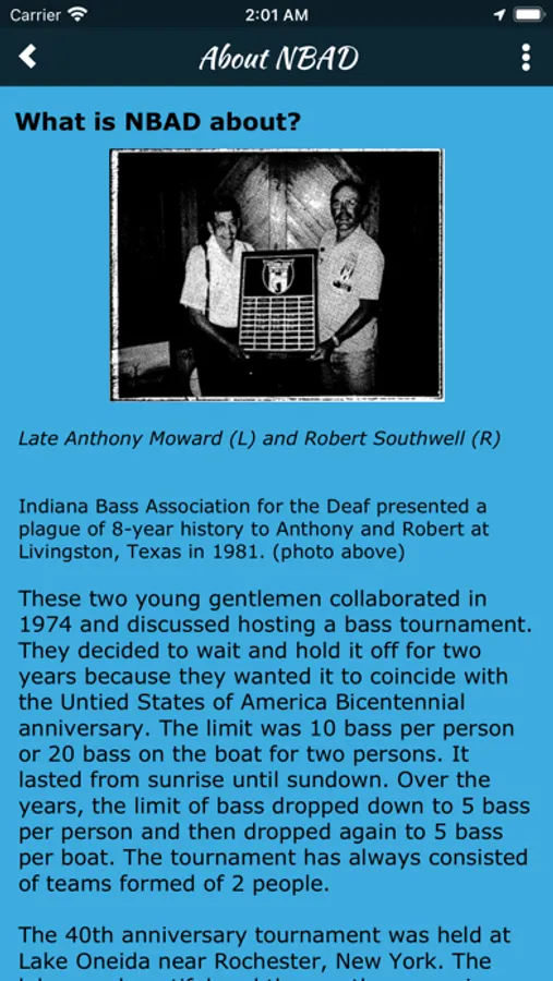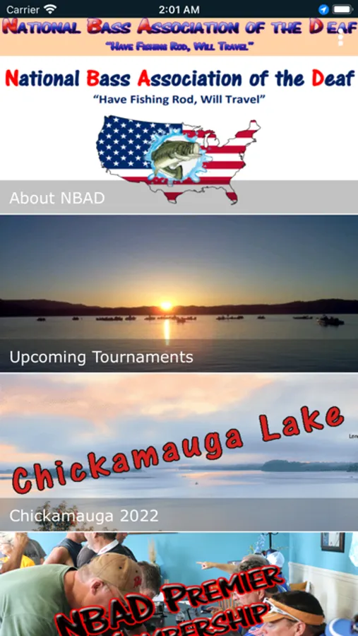 NBAD Anywhere is the app to get all of the information about the bass tournaments for the deaf, view the tournament results and photos.