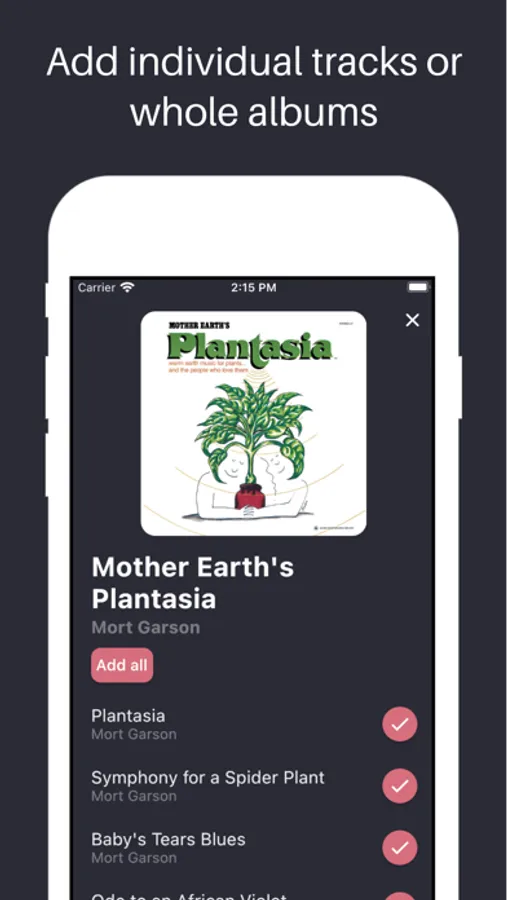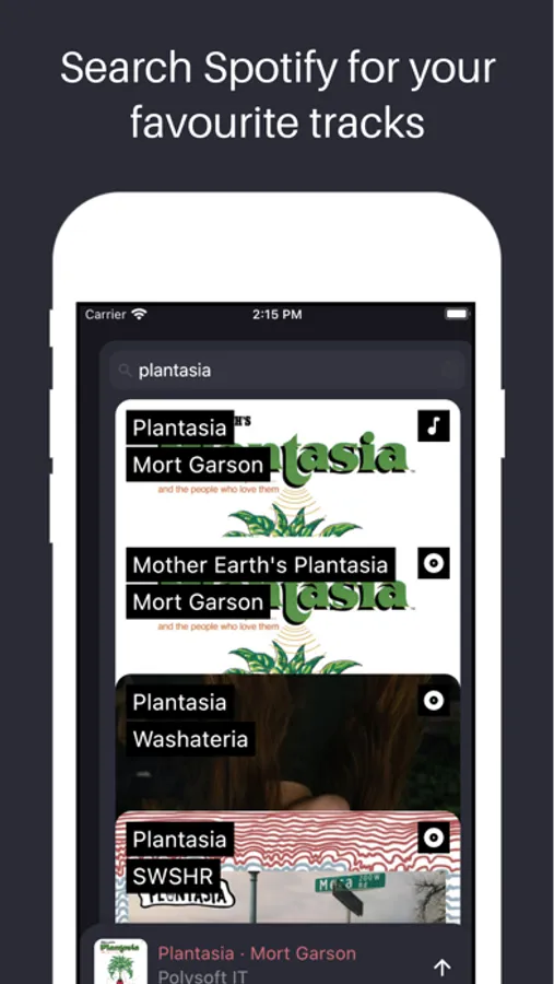 • Use the integrated Spotify search to find your favourite tracks/albums