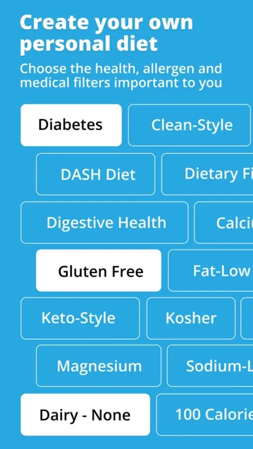 Your diet. Your way. Select any combination of allergen, diet and health filters, then scan the product barcode to see if it fits. It's like shopping with a dietitian!