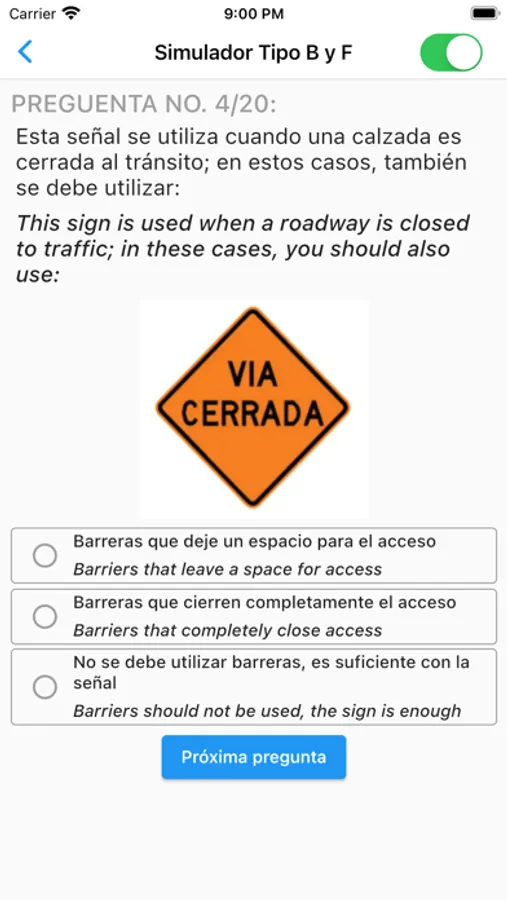 - Traducción al inglés para aquellos que no entienden las preguntas.