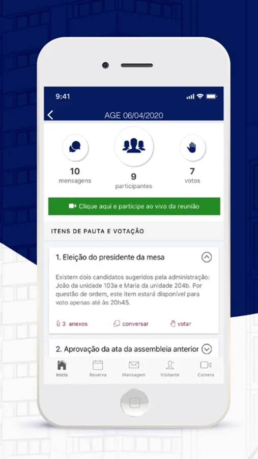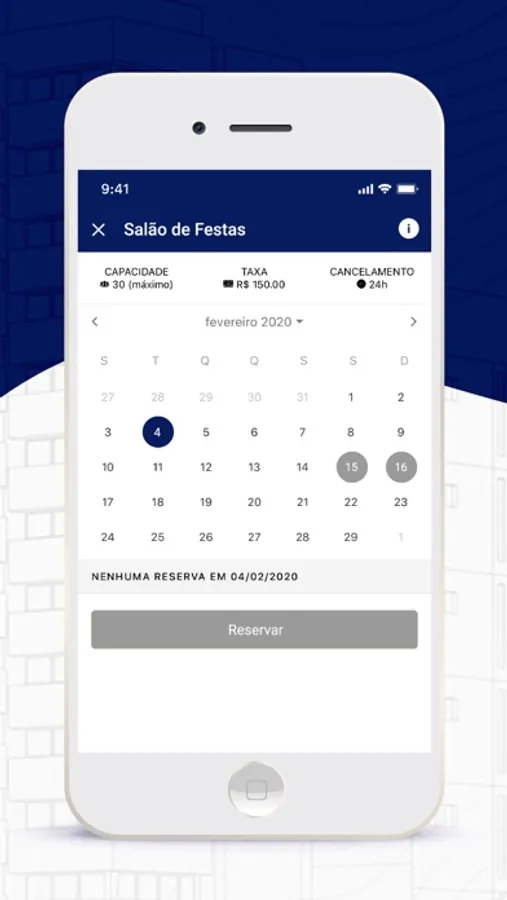 - reservas no salão de festas, mudanças e outras agendas,