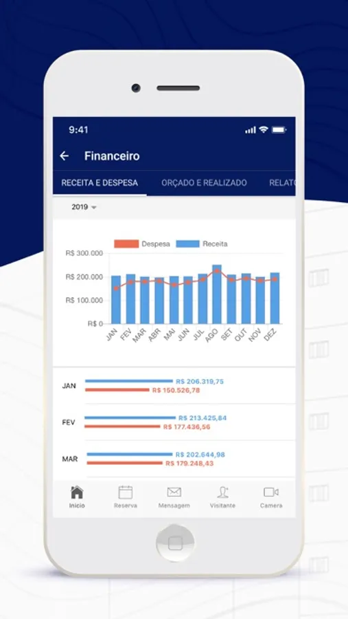 - comparativo de orçado versus realizado (gráficos e detalhamento)