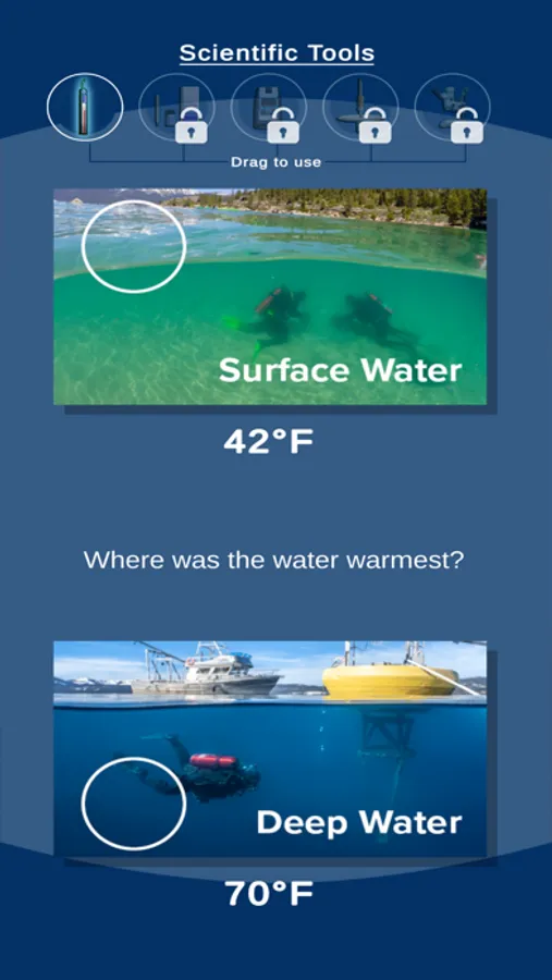 You will receive scientific tools along the way to help you better understand the clues you are finding and get you closer to finding Tahoe Tessie, these tools act as 3D/AR learning experiences teaching you how these tools actually work, just like actual scientists use when researching the health of the lake.