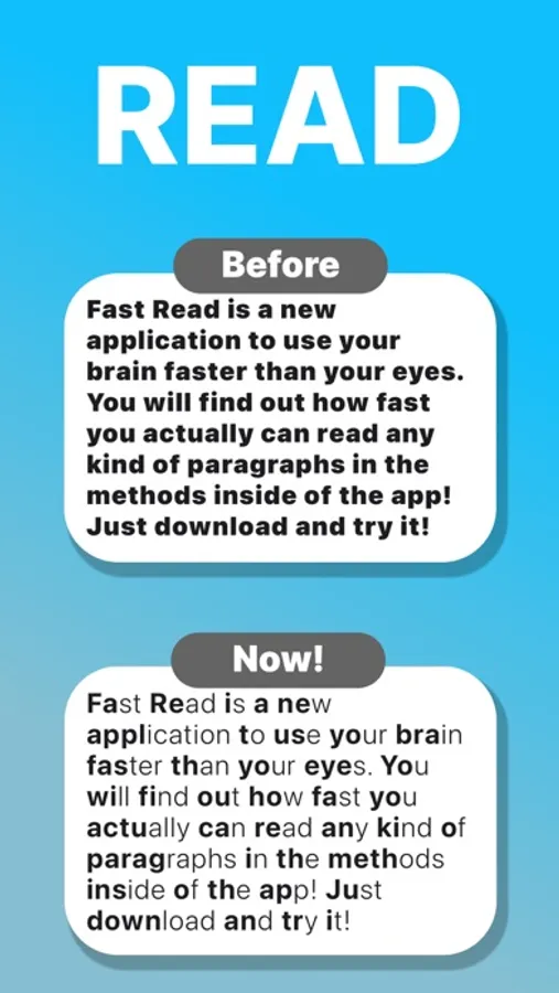 Just copy any text that you wanna read faster and paste into the app. Speed Bio Reader will convert your paragraph into the new text format. You will never understand how fast all the article you read. Don't waste your time! Download Fast Read Now!