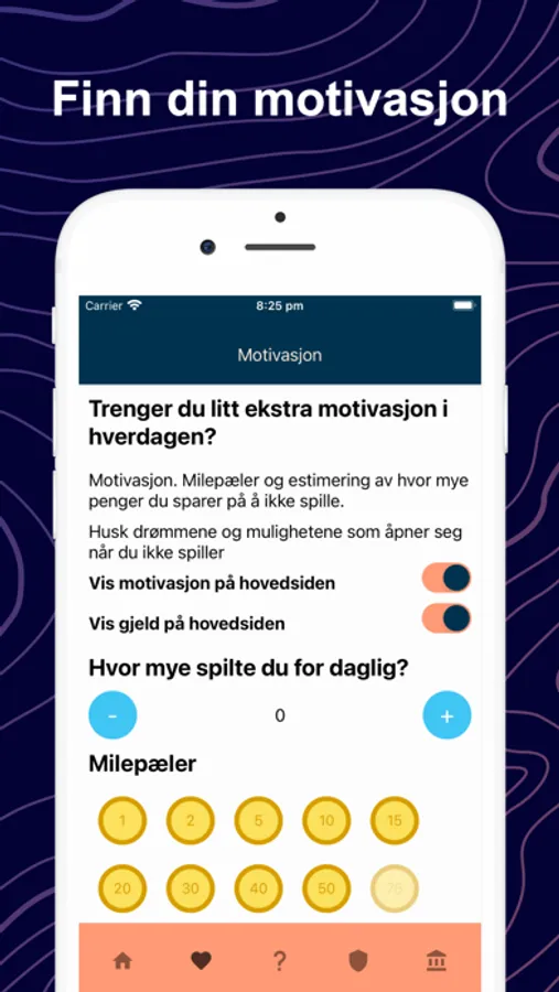 Sliter med spilleavhengighet eller pengespillavhengighet og mangler verktøy for å holde oversikt over dagene? Da kan kanskje SpilleSlutt hjelpe. Få motivasjon, oversikt over milepæler og rask vei til kvalifisert hjelp.