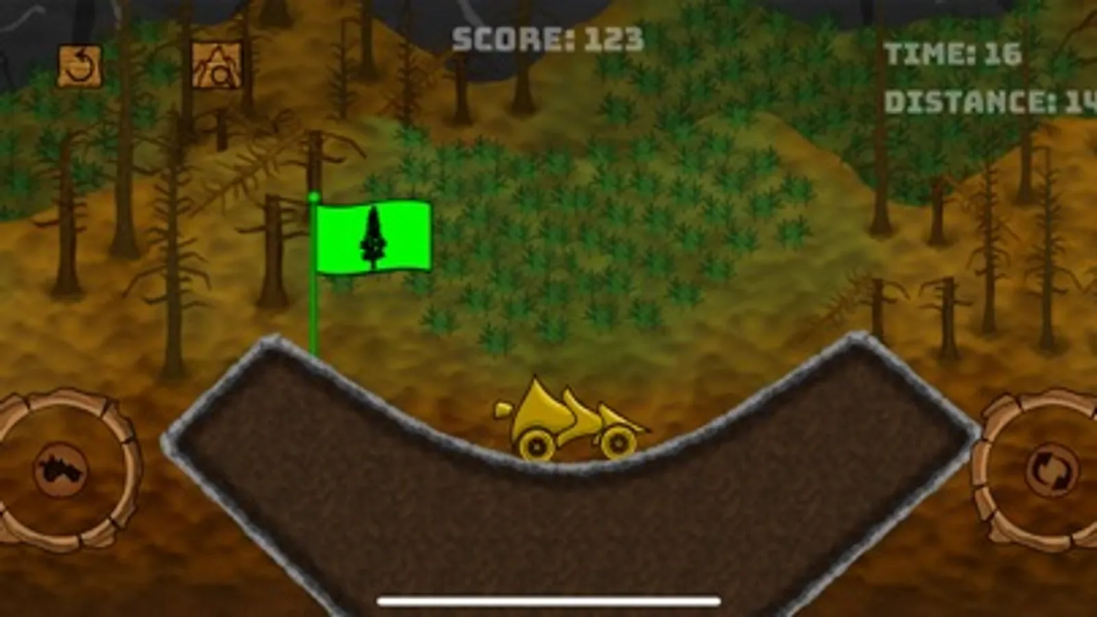 Race to complete all 30 levels in this action-packed game! Make sure you beat each level as fast as you can. You will be rewarded either a bronze, silver, or gold medal, as well as XP points which will go towards planting trees in real life. You'll notice your tree meter's progress on each "level complete" menu. Once it fills up, you'll be notified that a tree has been planted in real life! We've partnered with a company in Western Canada that has agreed to help us complete our goal of planting one million trees per year! Our item shop consists of 10 different vehicles based on different trees from around the world. Each car is for aesthetic use only, but a portion of the proceeds from each purchase will also go towards our goal. Now let's save the Earth while also having fun!