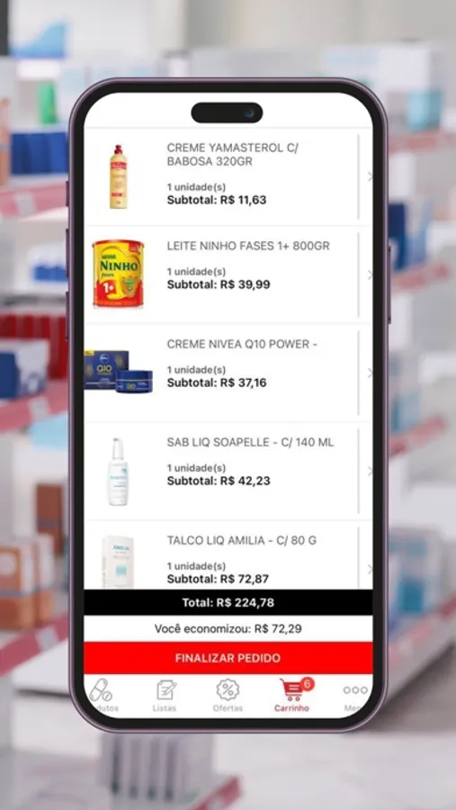 Baixe agora mesmo nosso App, faça o cadastro, escolha seus produtos e receba tudo de forma rápida sem sair de casa.
