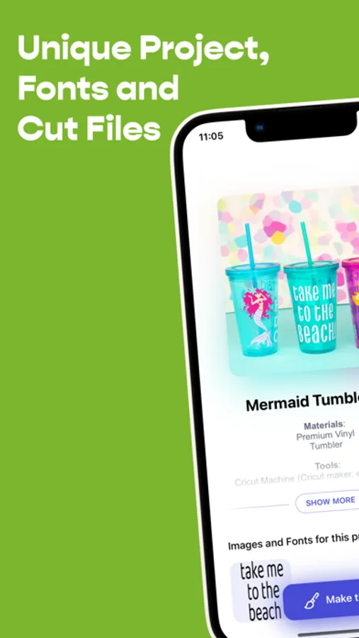 You can also choose from 500 cool files and over 1000 fonts and create your own design right inside the app