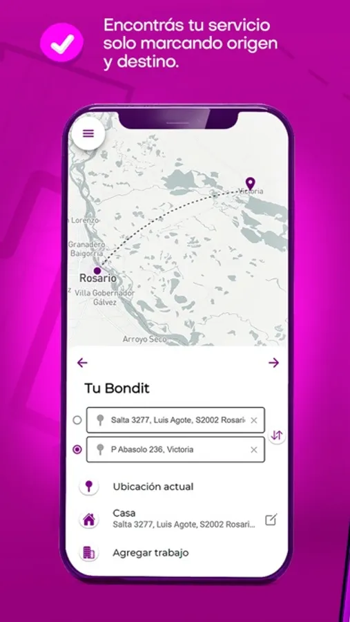 - Encontrá tu servicio: Decinos de dónde a dónde querés ir y nosotros encontramos el servicio que mejor se adapte a vos.