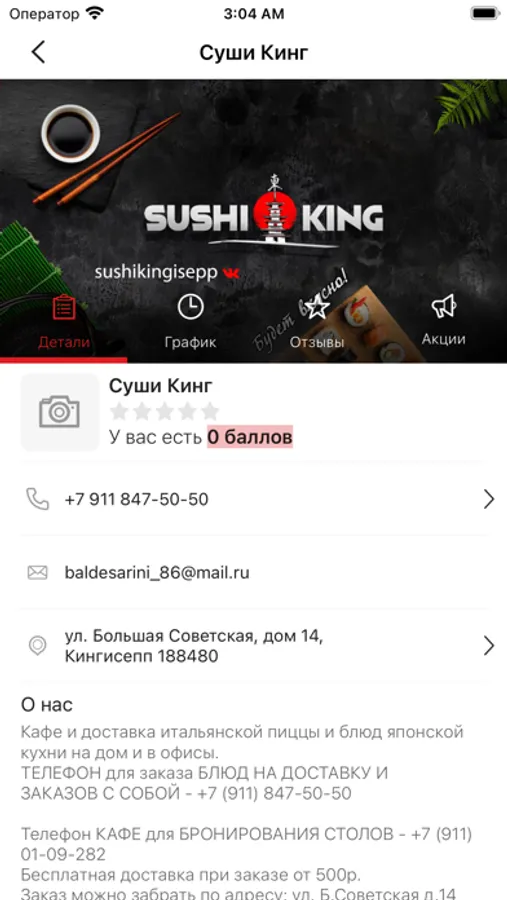 В «Sushi King» мы готовим и доставляем самые вкусные суши, роллы, поке, итальянскую пиццу, различные закуски и салаты, лапшу, стейки, шашлык на углях, десерты и напитки!