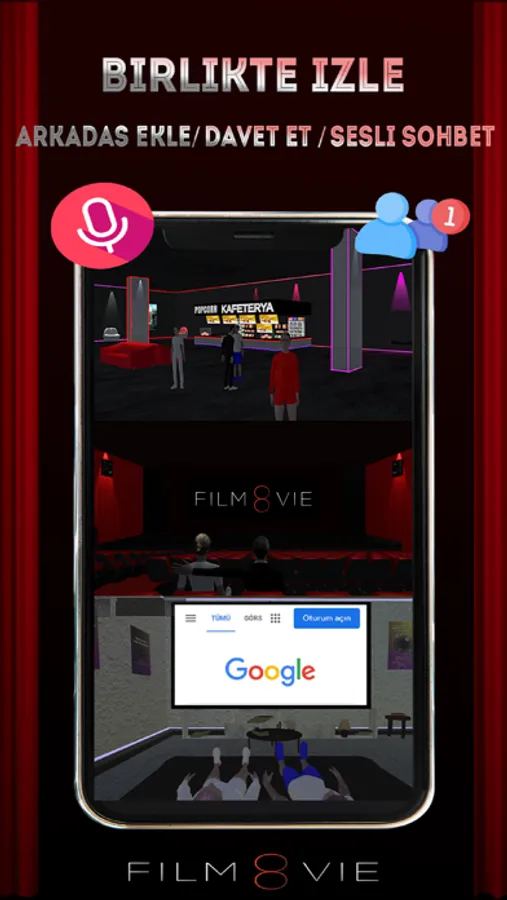 Uygulamamız içerisinde bir odaya katılmanızdan itibaren sesli sohbet özelliği aktif edilir. Lobi ekranında, sinema salonunda veya evinizde diğer insanlar ile birlikte izlerken sesli sohbet edebilirsiniz.