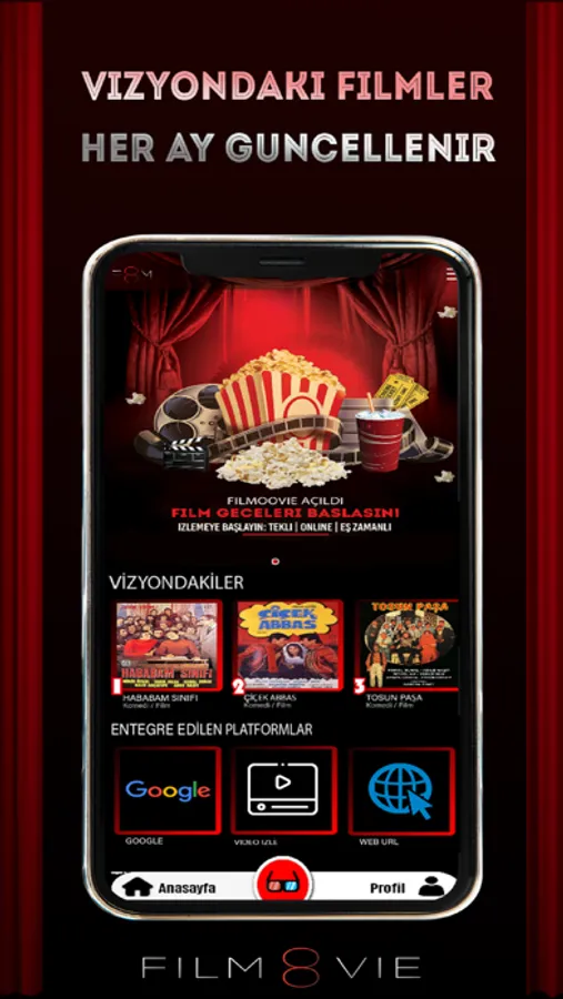 Sinema salonunda ister tek başına, ister arkadaşlarınız ile, isterseniz de yeni insanlar ile eşleşip izleyebilirsiniz.