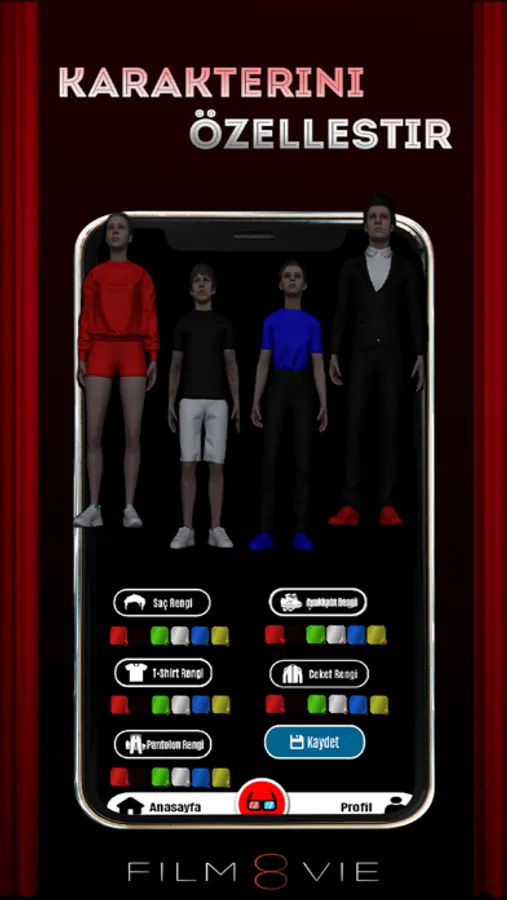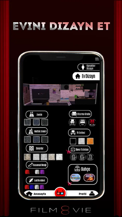 Uygulamamız içerisinde kişiselleştirebileceğiniz 4farklı karakter bulunmaktadır. Bu karakterlerden dilediğinizi seçip kendinize uygun olarak kişiselleştirebilirsiniz. Ayrıca uygulamamız içerisinde kişiselleştirebileceğiniz 3d olarak oluşturulmuş ev bulunmaktadır. Evinizi dilediğinizce dizayn edebilir ve arkadaşlarınızı evinize davet edip birlikte izleyebilirsiniz.