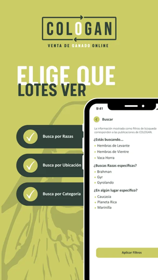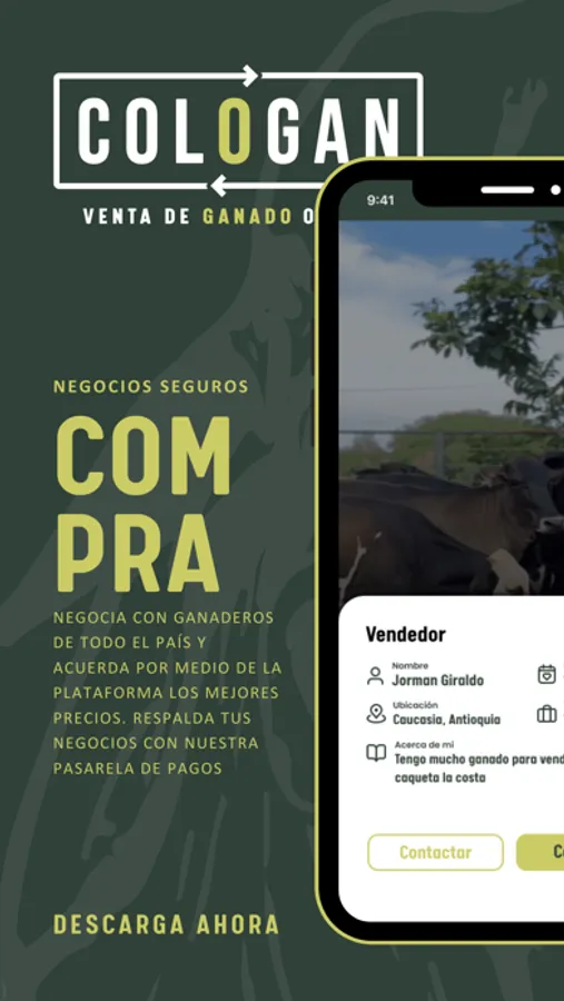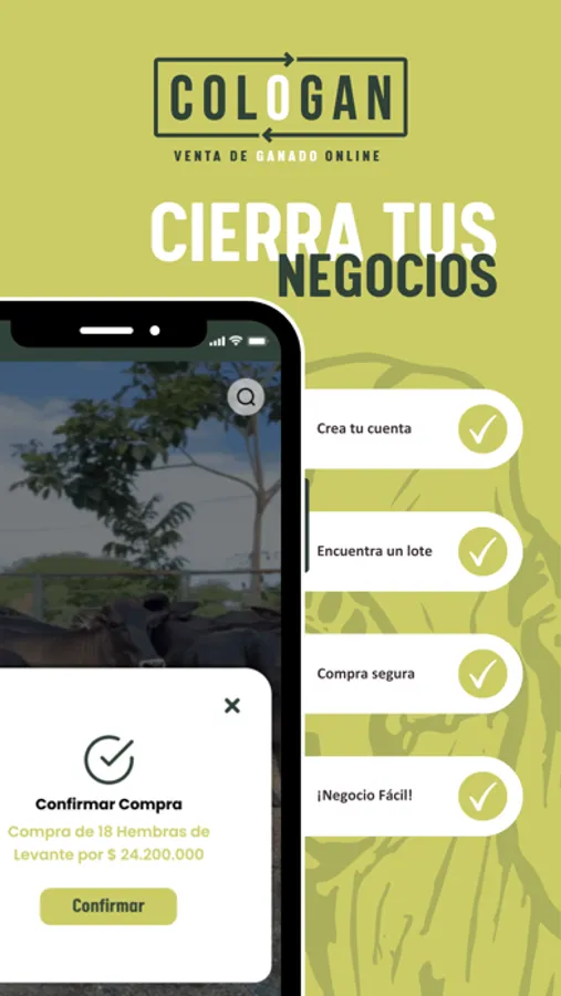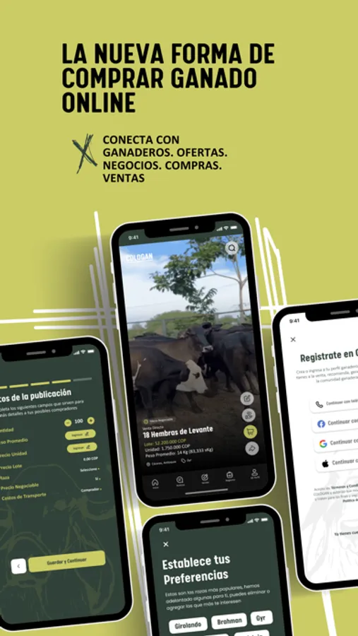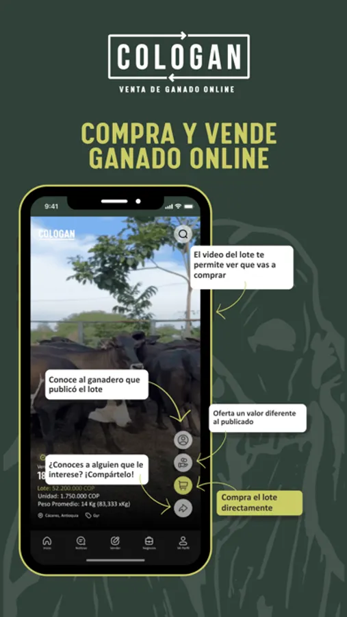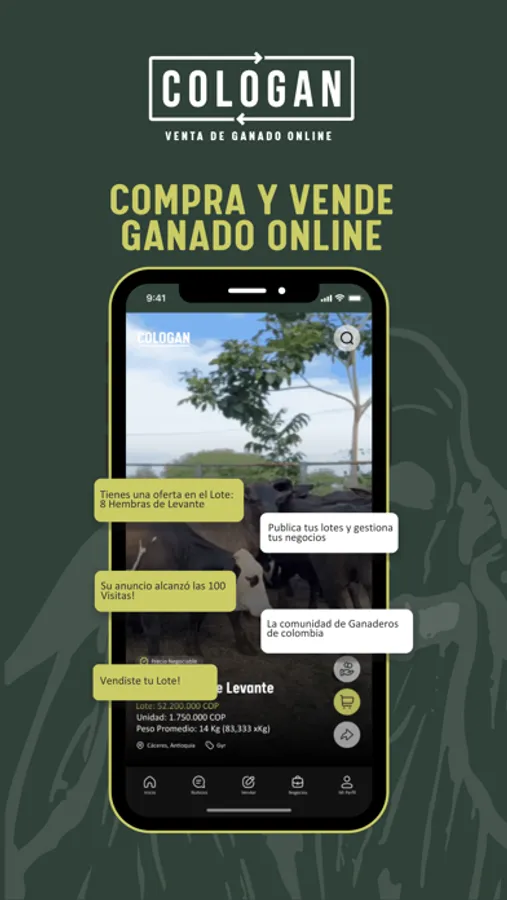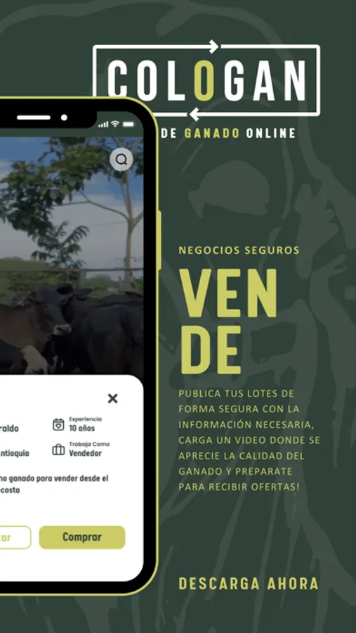 Somos una App dedicada a trabajar por y para el campo, donde puedes vender y comprar ganado de forma fácil, rápida, segura y eficiente.