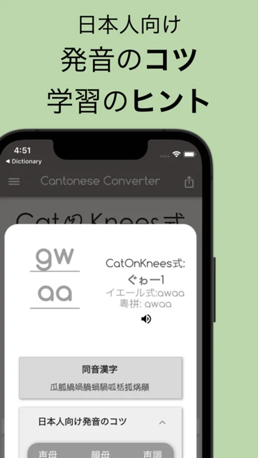 広東語発音をかな表記に!漢字・イエール・粵拼・かな検索に対応。