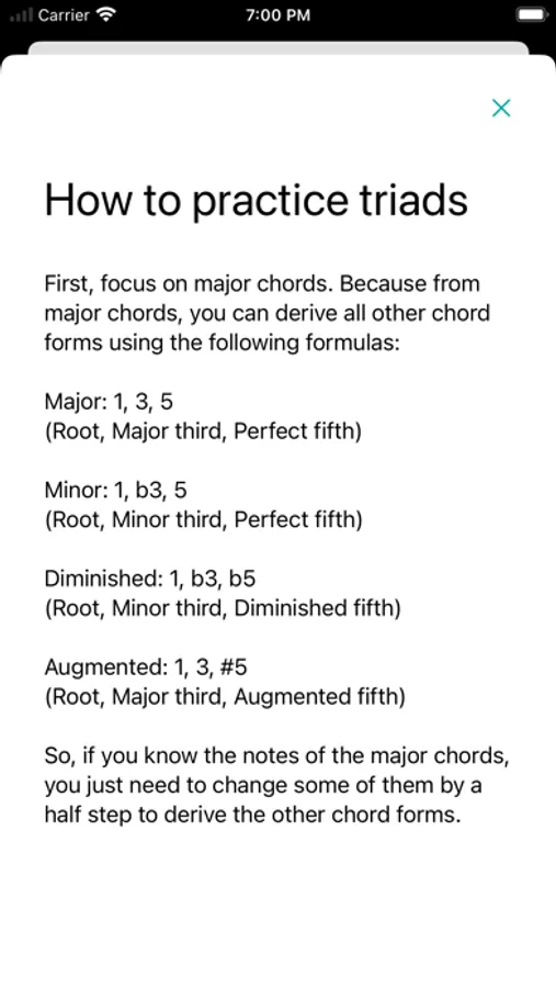But it's not just about memorization - our app also includes helpful tips to deepen your understanding of chord construction and theory. Whether you're a beginner or a seasoned pro, Triad Quiz has something for everyone.