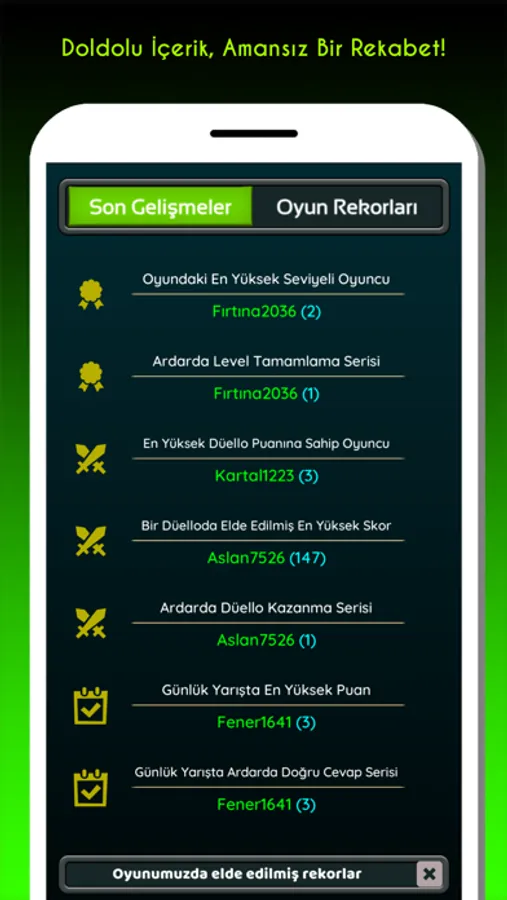 Sen de Beşiktaş, Fenerbahçe, Galatasaray veya Trabzonspor taraftarıysan hemen ücretsiz oyunumuzu indir, takımına olan sevgini ve futbol bilgini göster ve bu amansız rekabette yerini al. Bu futbol oyunu ile bir yandan yarışırken bir yandan da takımın hakkında hiç bilmediğin yepyeni bilgiler edineceksin.