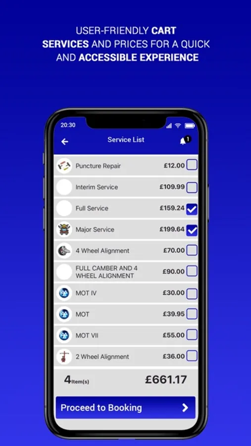 Track your MOT certificate and deadlines coming your way in one click. Get pop-up notifications for your MOT appointments and up-gradation of the vehicle. Explore through the app and find the ideal tyres from several tyre brands available for vehicles of all types in different sizes. Simply add the product or the service you wish to get in the service cart and get an overview of the prices then and there. You can also review your cart, service or product history and track other services through this app. Download the app now to avail exciting offers and great deals waiting for you in the CarFix Garage app.
