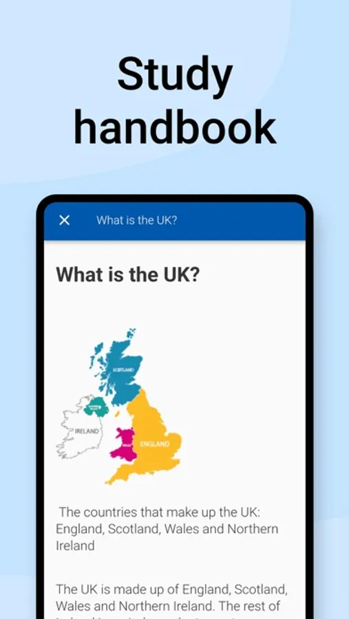 The Life in the UK Test app offers the most up-to-date and comprehensive materials for the UK citizenship exam. The application, which you can use as a prep book that you can use to prepare for the citizenship exam, contains all the materials for you to pass the exam.