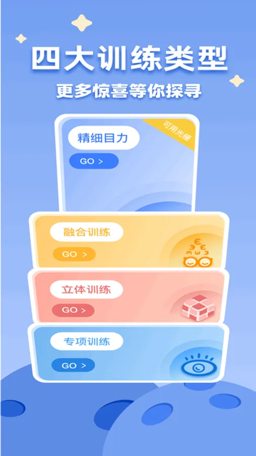 精细目力训练为主,背景加入不同颜色的光栅刺激模式。训练内容符合儿童心理特征,游戏趣味性,极大增加了患儿的依从性,乐于主动训练