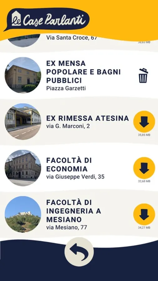 Grazie a “Le case parlanti” hai dunque la possibilità di ascoltare le storie che hanno da raccontarti ben 50 edifici del comune di Trento e vedere, grazie a una serie di illustrazioni animate, queste storie comparire nella realtà di oggi, attraverso lo schermo del tuo smartphone o tablet. Oltre a questo, per ciascun edificio puoi trovare immagini storiche e una scheda con link di approfondimento. E con la funzione diario potrai “appuntarti” le cose che ti interessano di più e consultarle in un secondo momento.