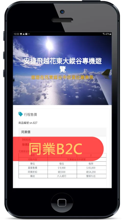 旅行得來速同業版的平台,它是針對旅遊同業的特別需求而去開發的平台,長期以來旅遊同業在旅遊商品上,一直停滯在傳統報價的模式,太耗費時間及人力,因此本平台針對此一問題,開發出旅遊供應商一經商品上架後,所有同業經銷商就會自動轉換為自己的旅遊商品,達到B2B2C 自動化,另外還有提供新新聞的部分,也是利用影音傳遞的方式,讓旅遊業者只要透過手機,就可隨時接收到最直接的旅遊資訊.