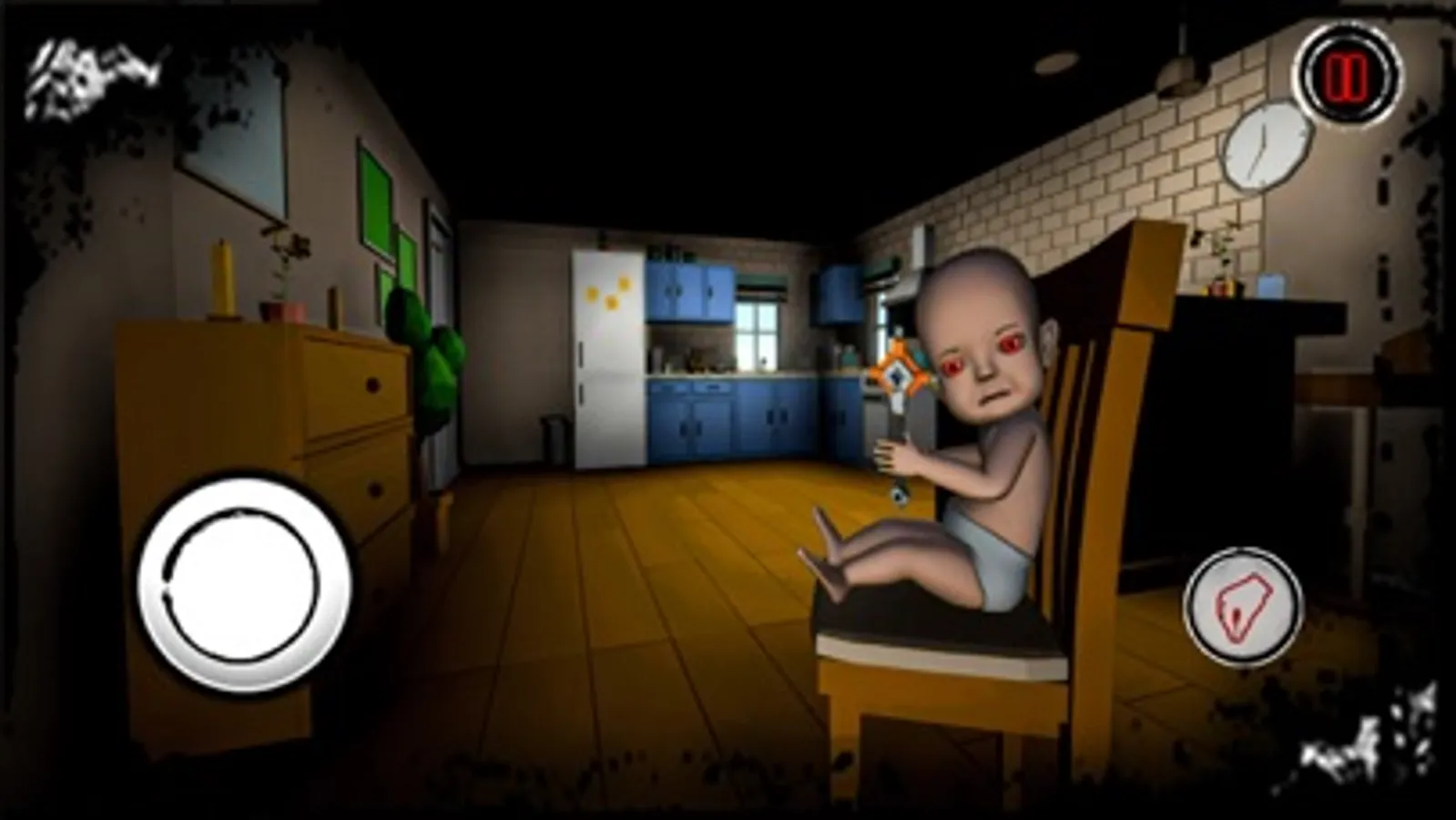 Evil baby you drag to move from table to chair and prevent catching yellow baby. Monster baby in an angry mood to become scary baby in granny horror house.
