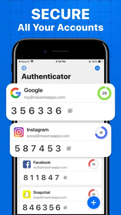 Authenticator app is a highly recommended free 2FA app used for securing your accounts on different platforms such as Instagram, Google, Facebook, Github, Twitter and many more. We support 1000+ apps for authentication!