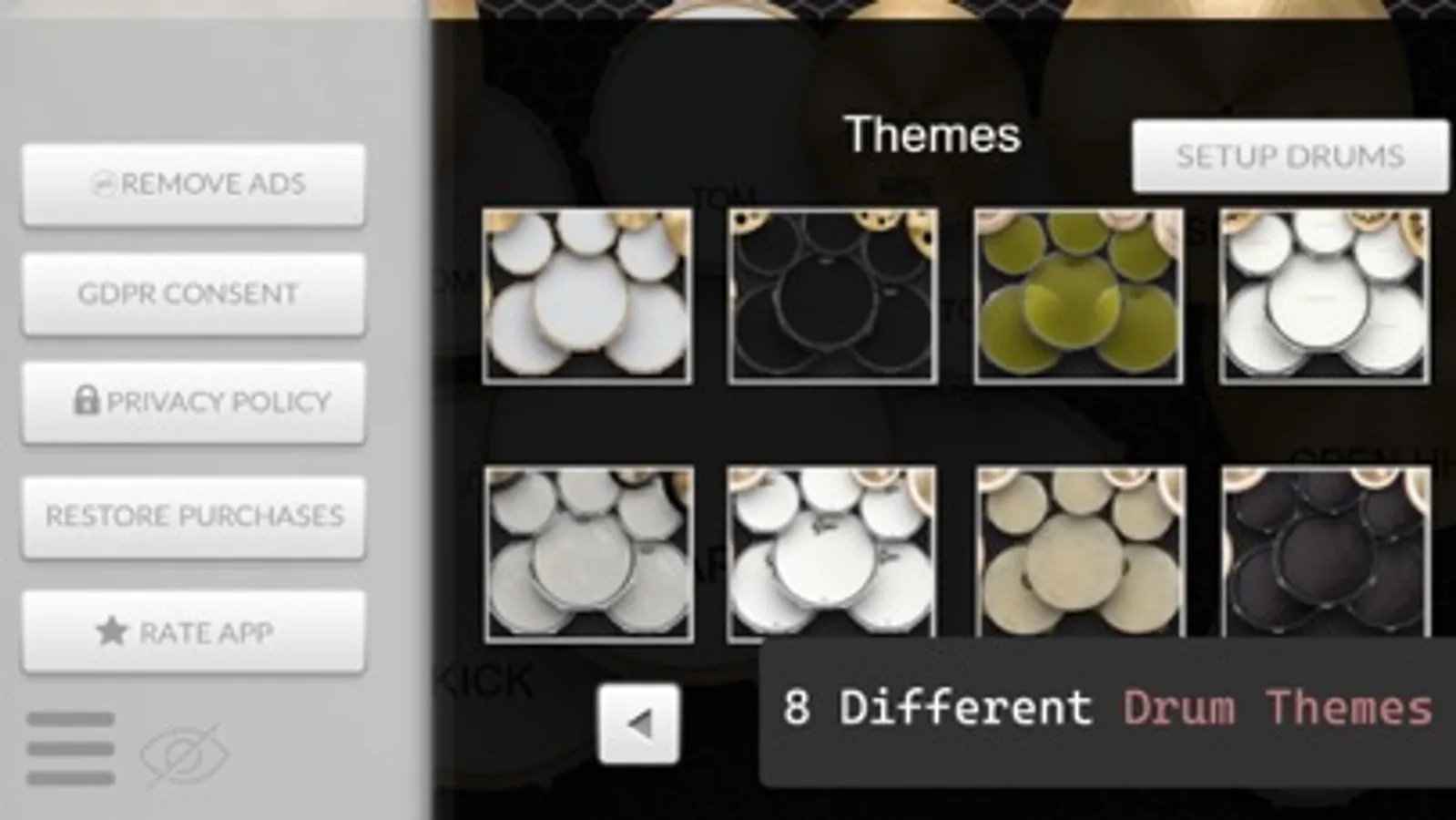 With Superstar virtual drum set create a variety of beats and music in style. Arrange your drum set in your own way and choose from a variety of drum themes.