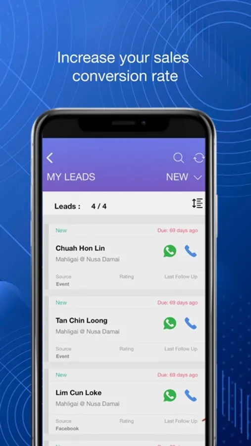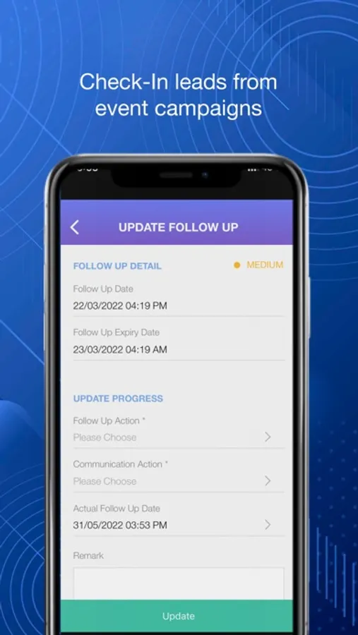 A mobile app facilitates the initial stage of sales process for leads tracking to increase productivity and to build effective solid sales pipeline through the steps that could convert more leads into actual opportunities.