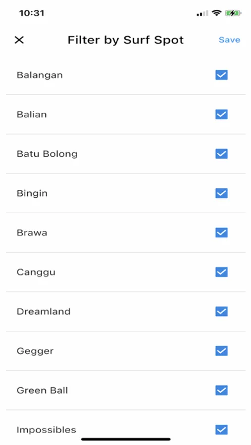 SurfCheck will let you post a surf report of the spot you are at right now. Opening the Bali surfing spot menu, Bali surfers are able to choose their favourite spots they usually surf at. The “favourite surf spots” filters the surf reports and will show you the surf reports of your favourite surf spots automatically. Other surf reports from other surfing spots will not be shown and will be filtered out. This way you can check the surf of only the spots you love.