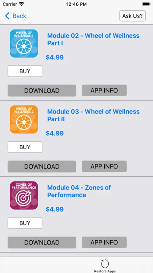 (ONE-TIME PAYMENT OPTION) This app contains many different Modules 01-18 and proprietary pieces of content available for In-App Purchases. Once the initial free app is downloaded, you can search the listings for modules and other content to purchase.