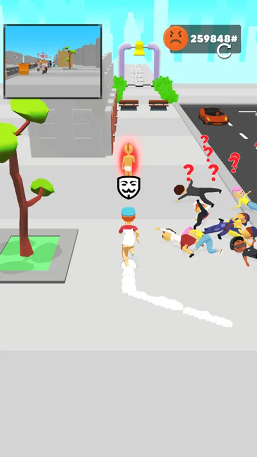 While running, reach out your left hand and press the bells of the houses standing in a row along the platform on the left.