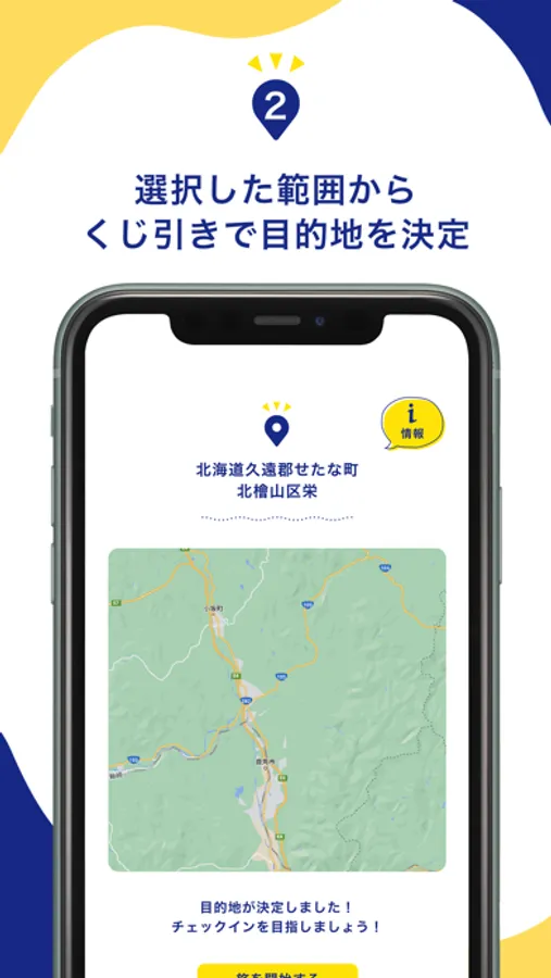 このアプリは、あなたの旅行先を定められた範囲のなかから決定します。