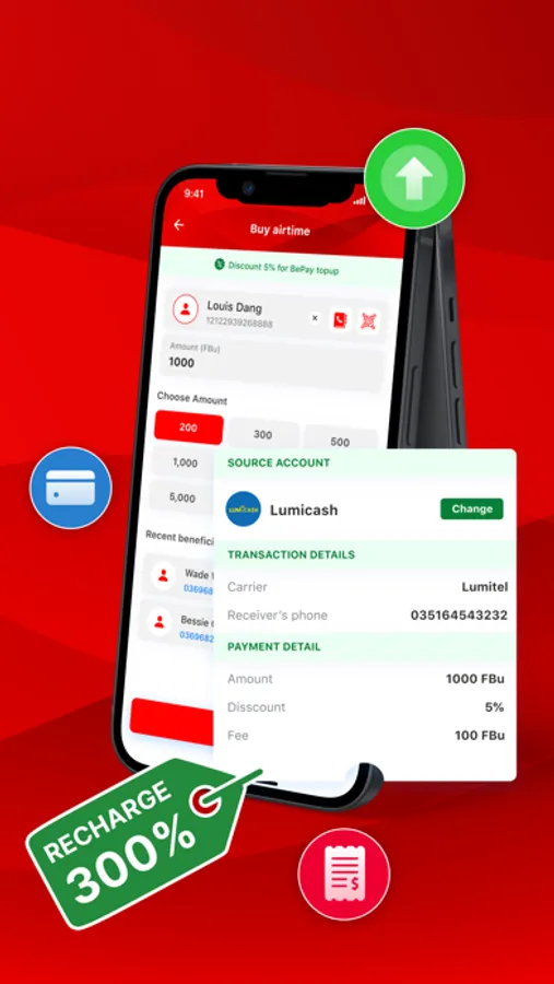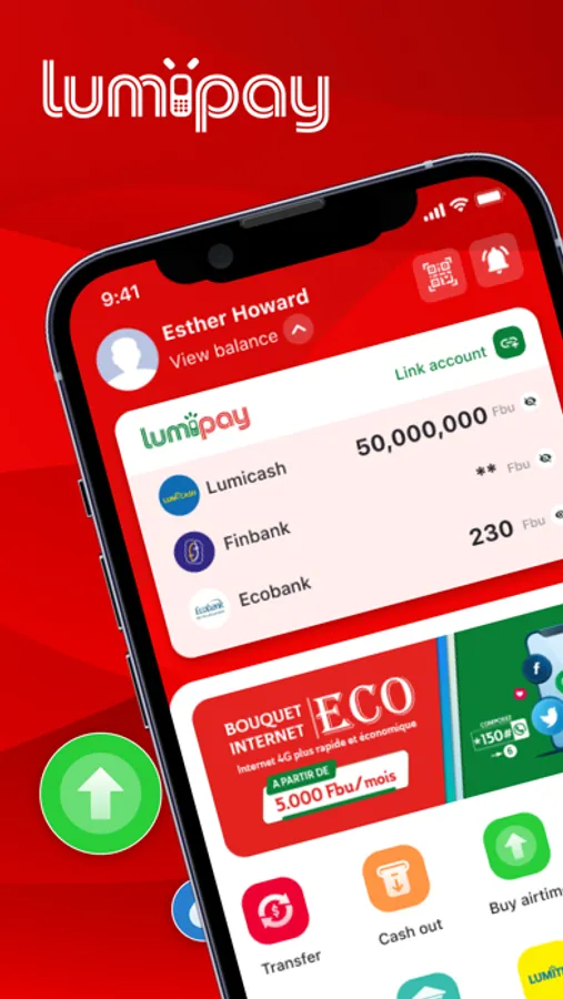 To become one of the best mobile money services in Burundi, we launched the Application named as LumiPAY that would help you increase more experience. The App brings to our customers the best mobile money experience and through the LumiPAY App our customers can send and receive money to and from their loved ones, pay for commodities, access their bank accounts and be able to make other digital payments at anytime and anywhere.